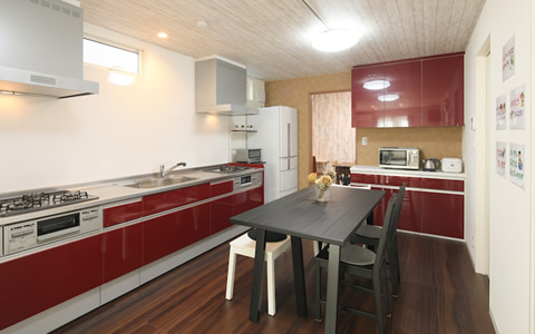 システムキッチンは広々と使えて、みんなで一緒に料理するのもが楽しくなります。水廻りやキッチンは各個人のもの、共有のものがしっかり分けられているので、余計な心配をすることもありません。各家庭で楽しむもよし、お互いに持ち寄ってちょっとしたパーティも楽しめます。