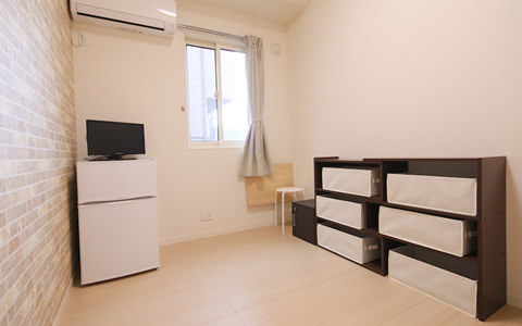 2階の個室は全室ロフト付きで、各部屋には冷蔵庫・エアコン・テレビなどの家電、折り畳み式のテーブルやクローゼットが付いています。